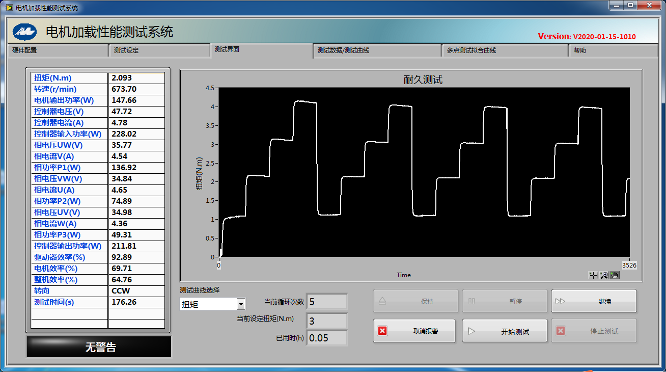 深圳某汽車制造廠定制的水泵電機綜合性能測試系統C0-MTHD284BYD是一套用于測試無刷電機的前端直流電壓、電流、轉速、轉矩、功率p1、p2、p3、效率,以及無刷電機驅動器功率分析。測試結果匯總包含空載點、堵轉點、最大轉矩點、最大輸出點,最大功率點、額定點(用戶自己定義轉矩),本套系統配有3個測功機(300mNm/3Nm/28Nm)且三個測功機之間可以通過轉換器與上位機控制實現自由轉換,通過PA2000mini 功率分析儀采集電機的扭矩轉速及驅動器的輸入輸出電壓電流,軟件是根據客戶的需求進行定制化開發,整套系統交付客戶使用后獲得客戶的高度好評。